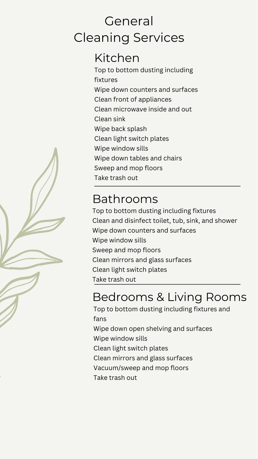 Beyond our 3 comprehensive cleaning plans, if you are looking for an additional services-ranging from appliance detailing to grout cleaning-reach out to us today.